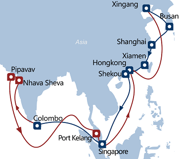 中国的货物通过海运到达印度主要港口,如 新德里、孟买、NHAVA SHEVA...